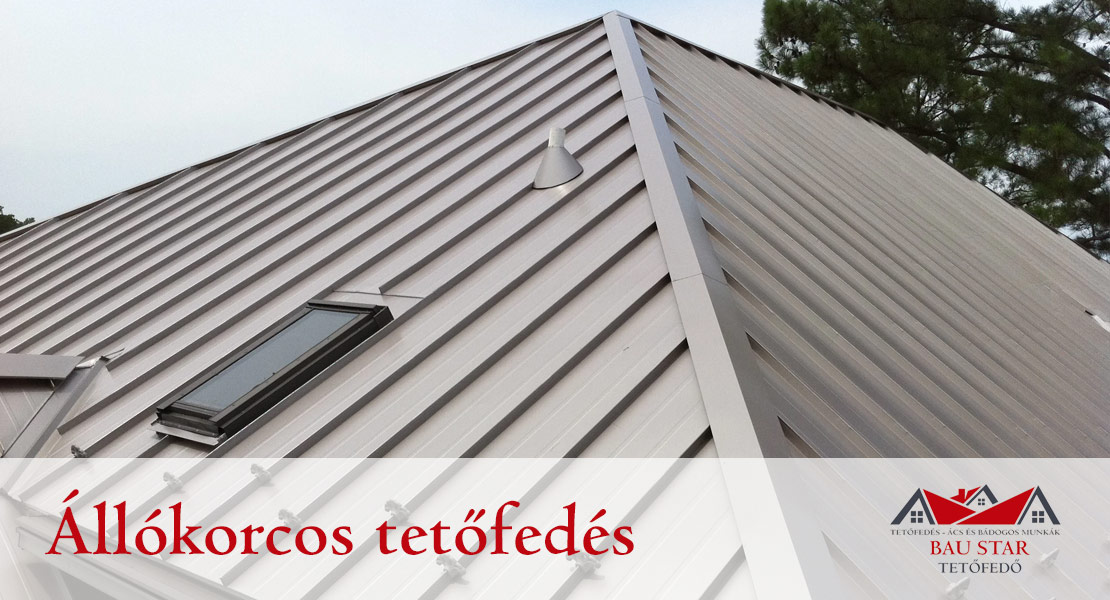Az állókorcos tetőfedés kiválóan alkalmas nagy területek fedésére, burkolására és lehetővé teszi az egyedi stílusú tetők építését,  ami korszerű külsőt kölcsönöz neki.